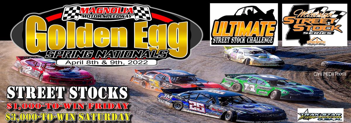 Columbus, Miss. (03/29/22) - Magnolia Motor Speedway is race ready for the 2022 edition of the Golden Egg Spring Nationals. The Golden Egg Spring Nationals Trak-Star Street Stock Special is co-sanctioned by the Mississippi Street Stock Series and Ultimate Street Stock Challenge.